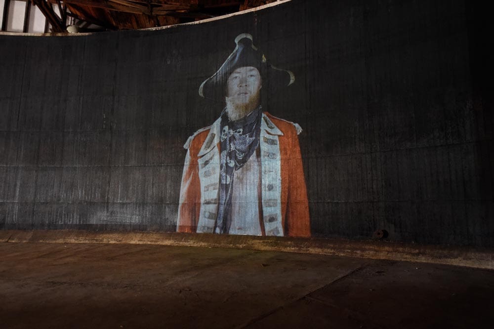 Image: Installation view, Bungaree’s Farm, by Mosman Art Gallery at the T5 Camouflage Fuel Tank, Georges Heights, January – February 2015