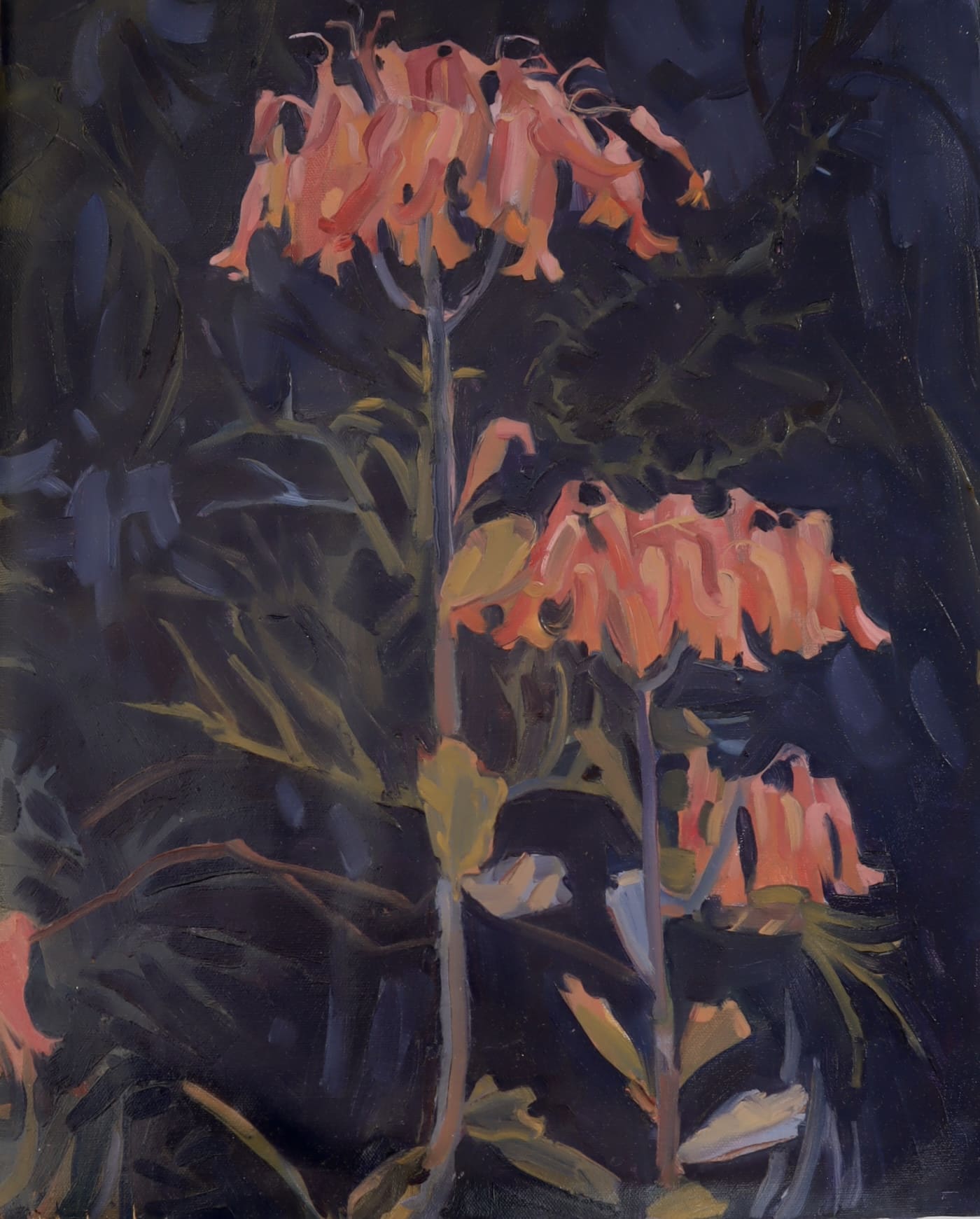 Focusing on the shifting light as winter gives way to spring, these paintings capture the moments which mark the transition of day into night. The paintings explore the nuances of twilight, where fading daylight seeps into inky, velvety tones. As the seasons change, so too does the light, drawing our attention to the quiet intimacy that the evening holds, especially within the embrace of the bush.